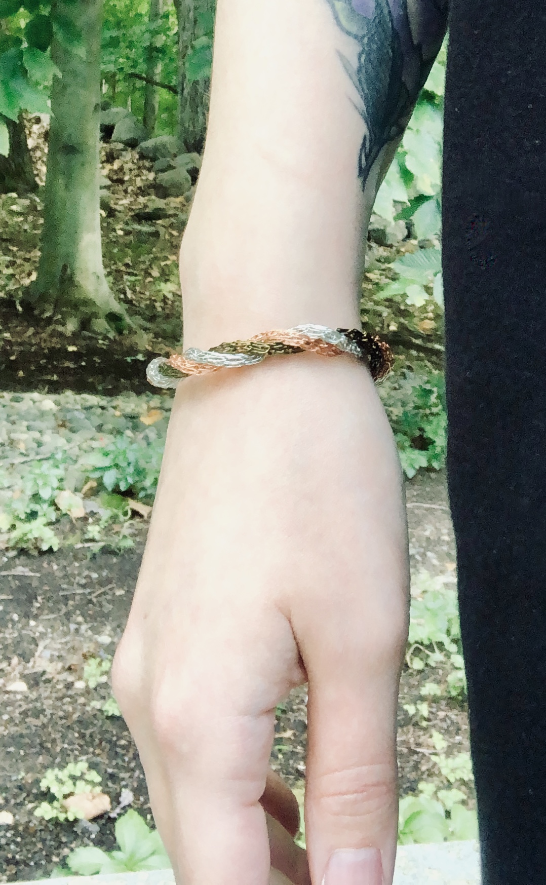 A twisted 100% handmade viking knit bracelet made of three different metal colors!
