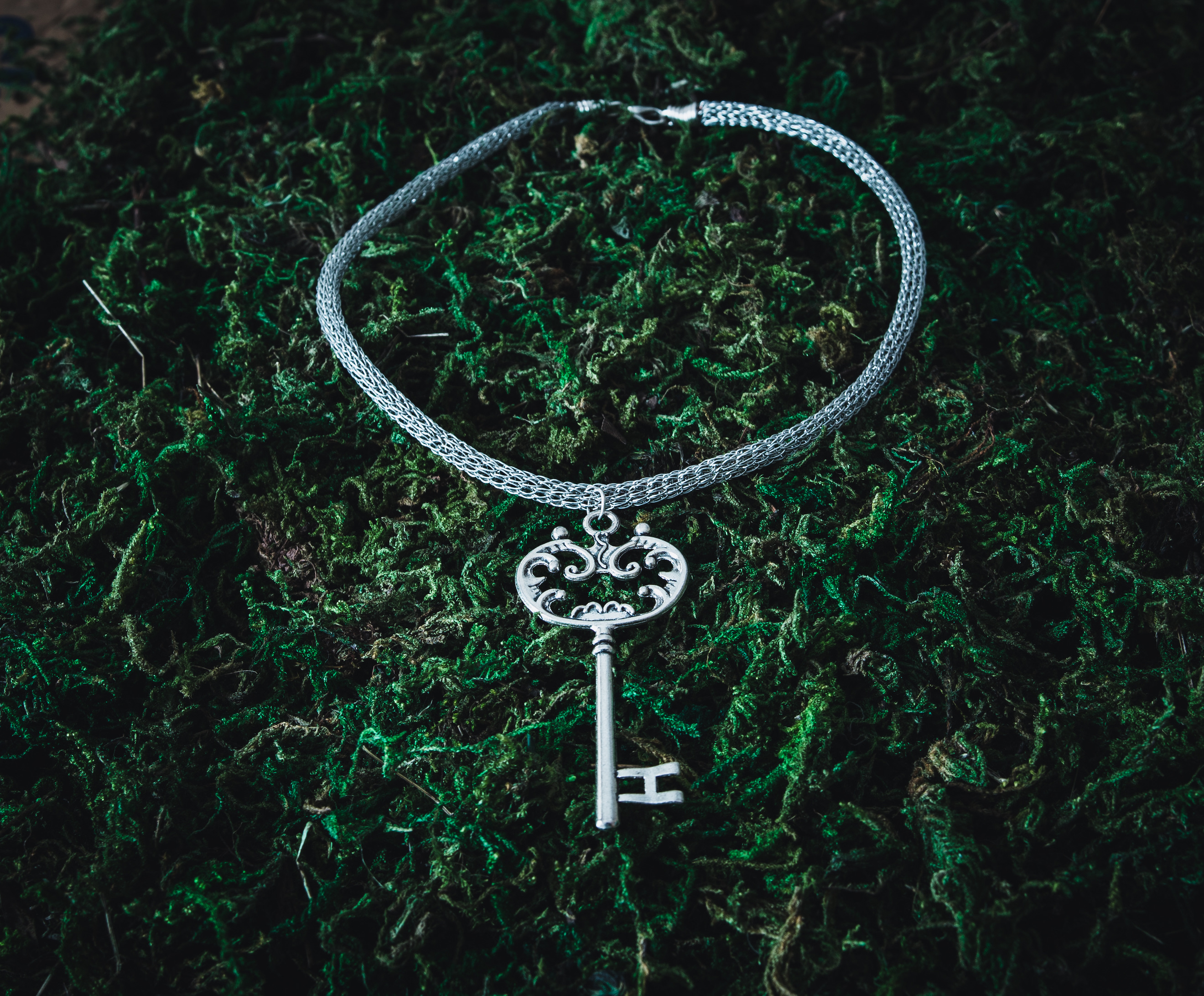 A simple choker inspired by Alice in Wonderland. The handmade viking-knit chain is approximately 15 ¼ inches (39 centimeters) in length, including the lobster claw clasp.