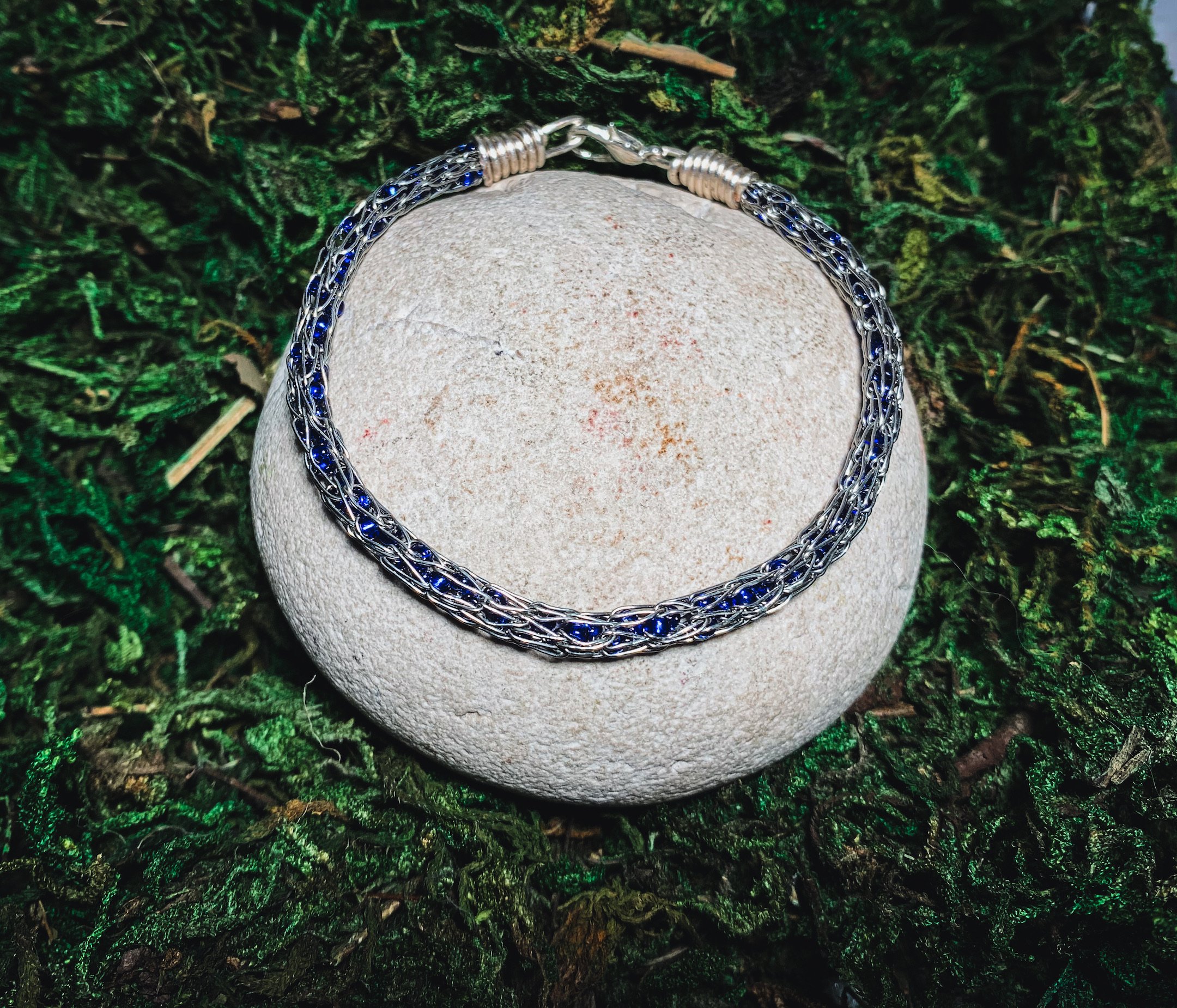 SAMPLE Skinny Blue Beaded Viking Knit Bracelet