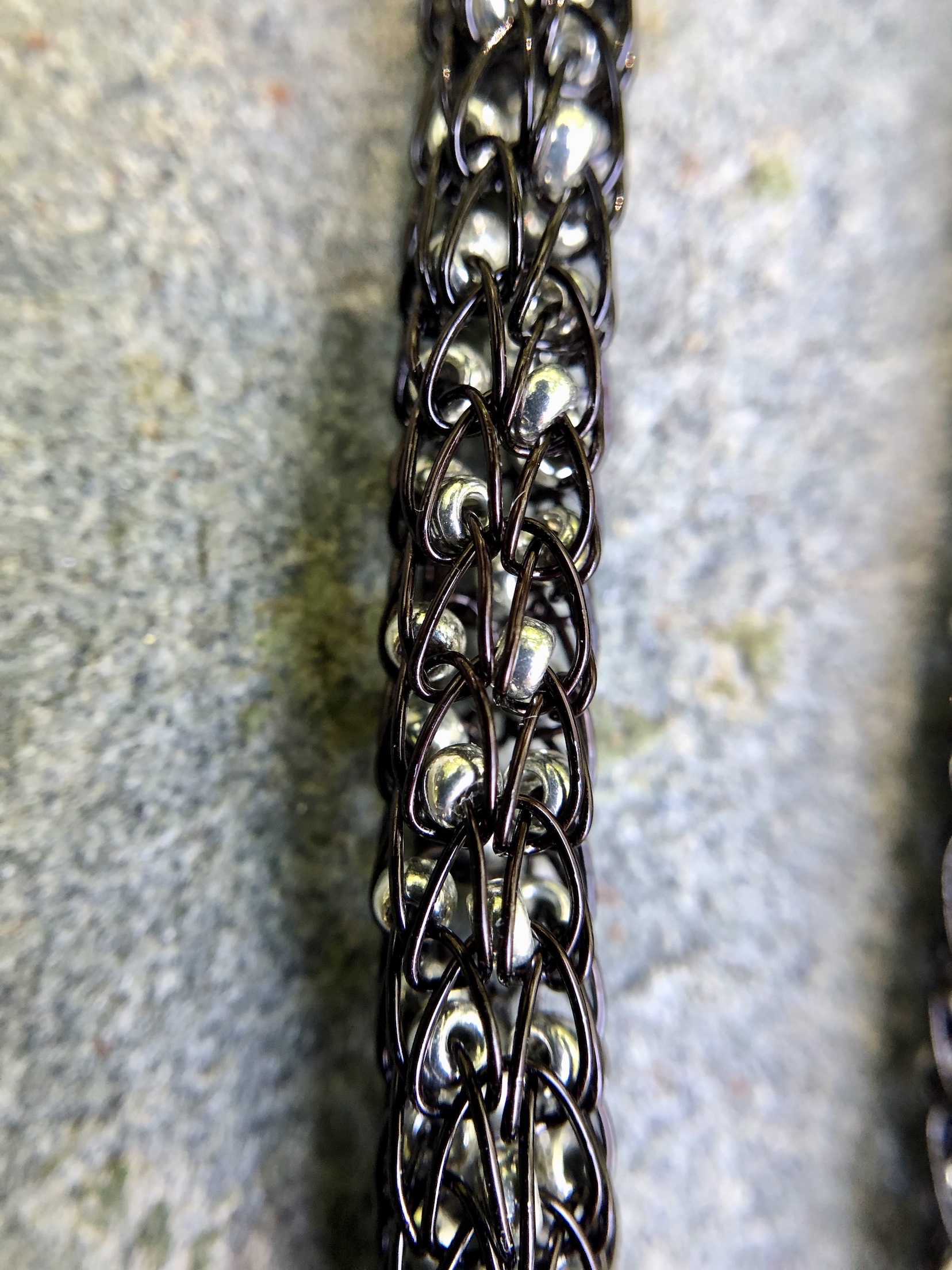 Black & Silver Cat on the Moon Beaded Viking Knit Earrings
