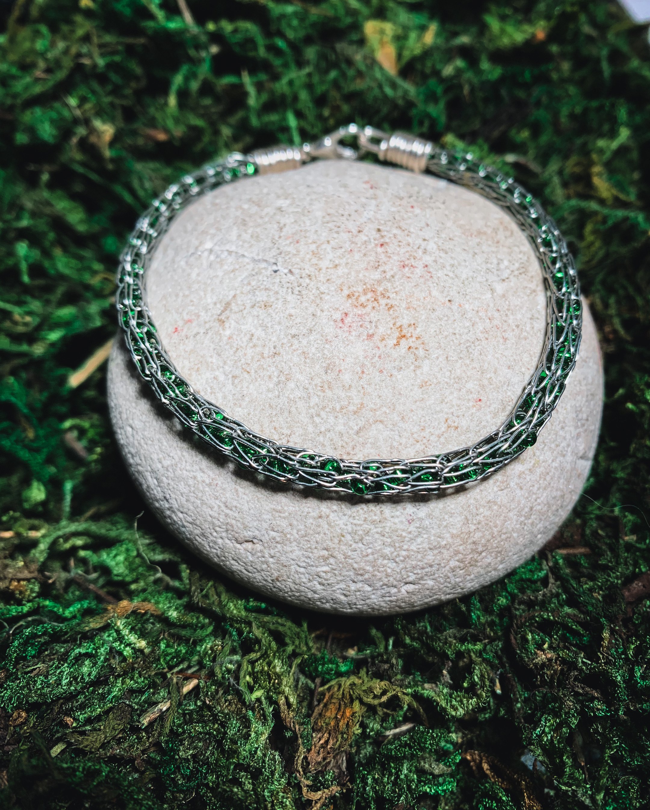 SAMPLE Skinny Green Beaded Viking Knit Bracelet