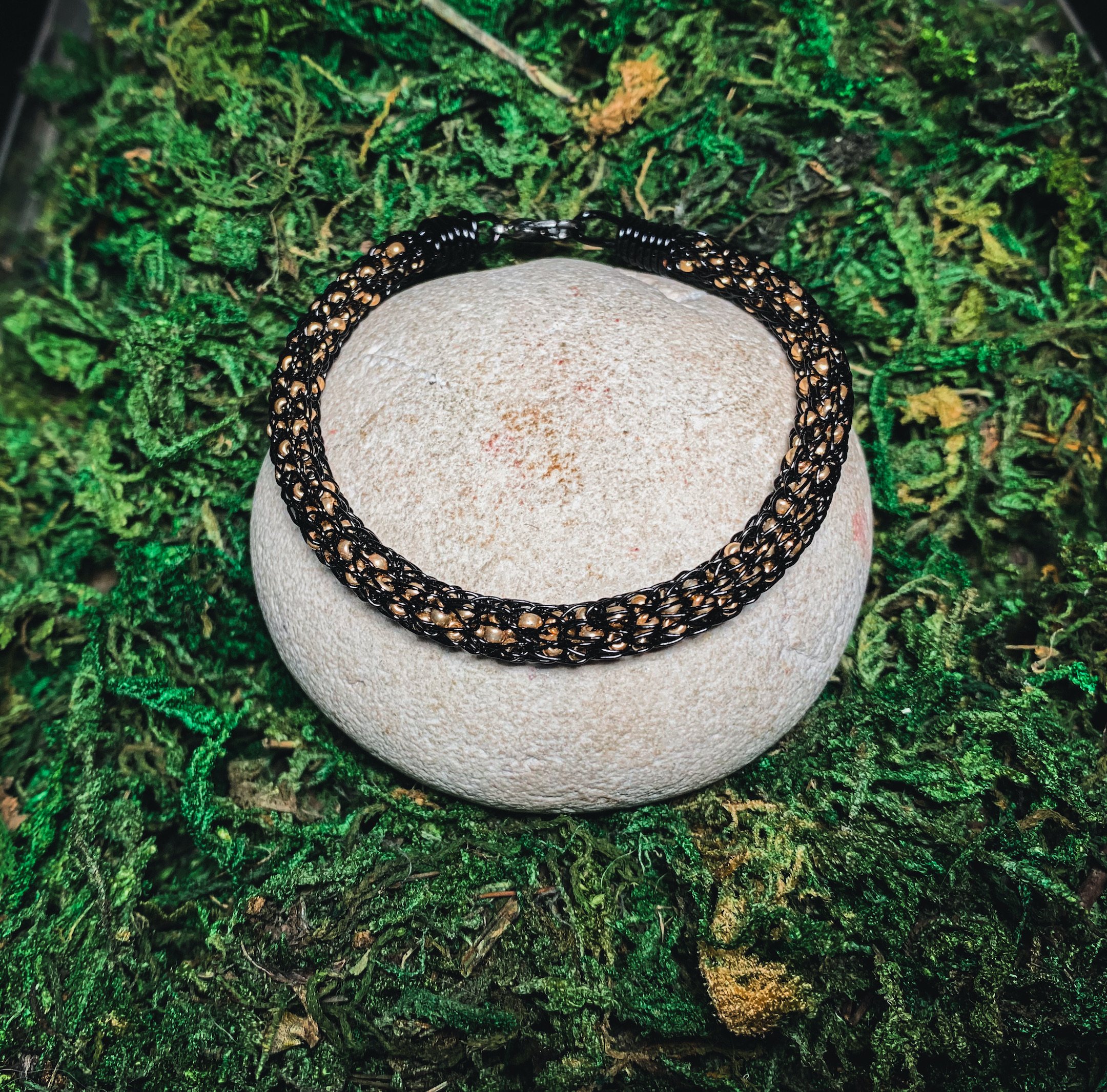 CLEARANCE Gold Beaded Black Viking Knit Bracelet