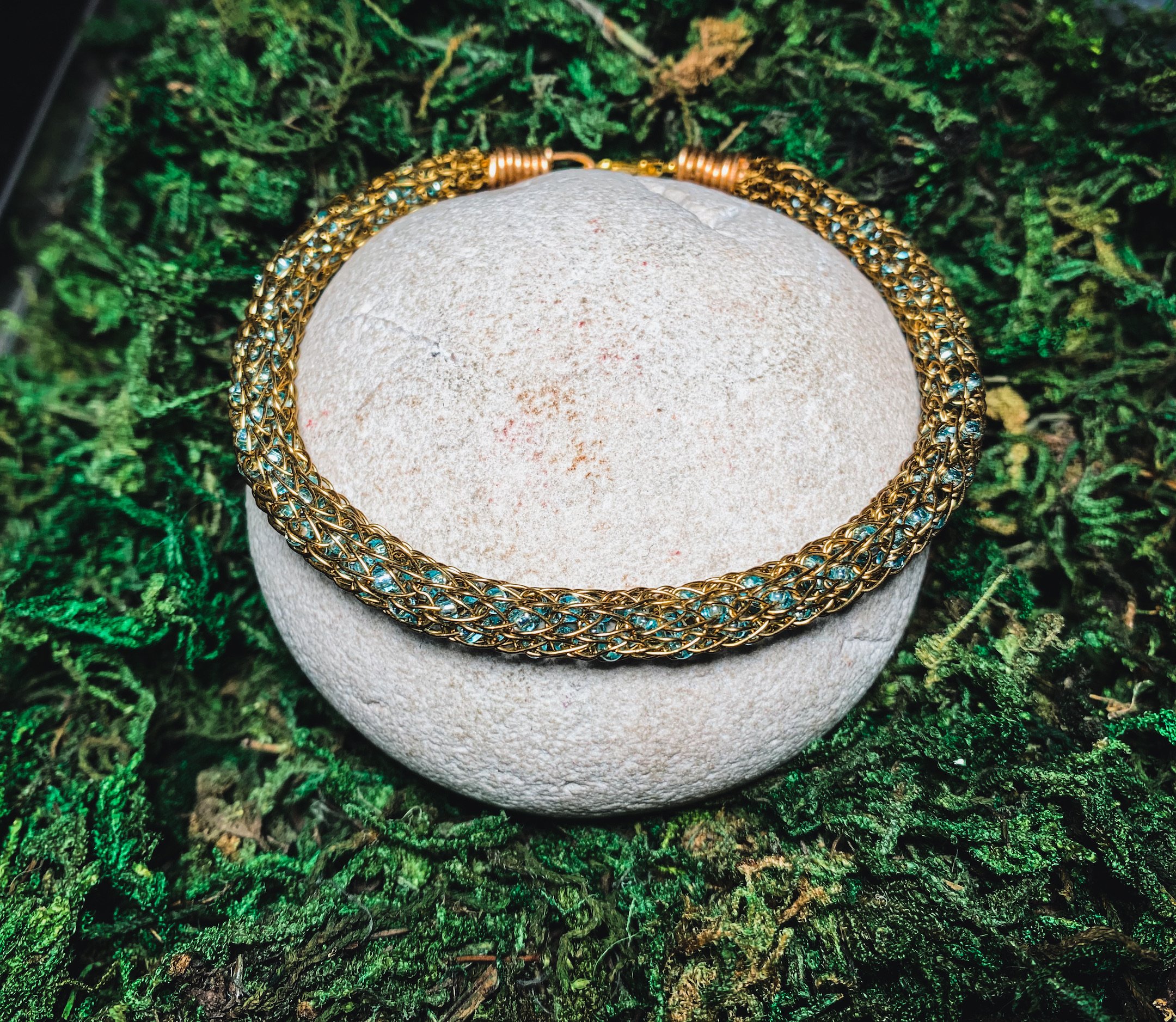 CLEARANCE Aqua Beaded Brass Viking Knit Bracelet